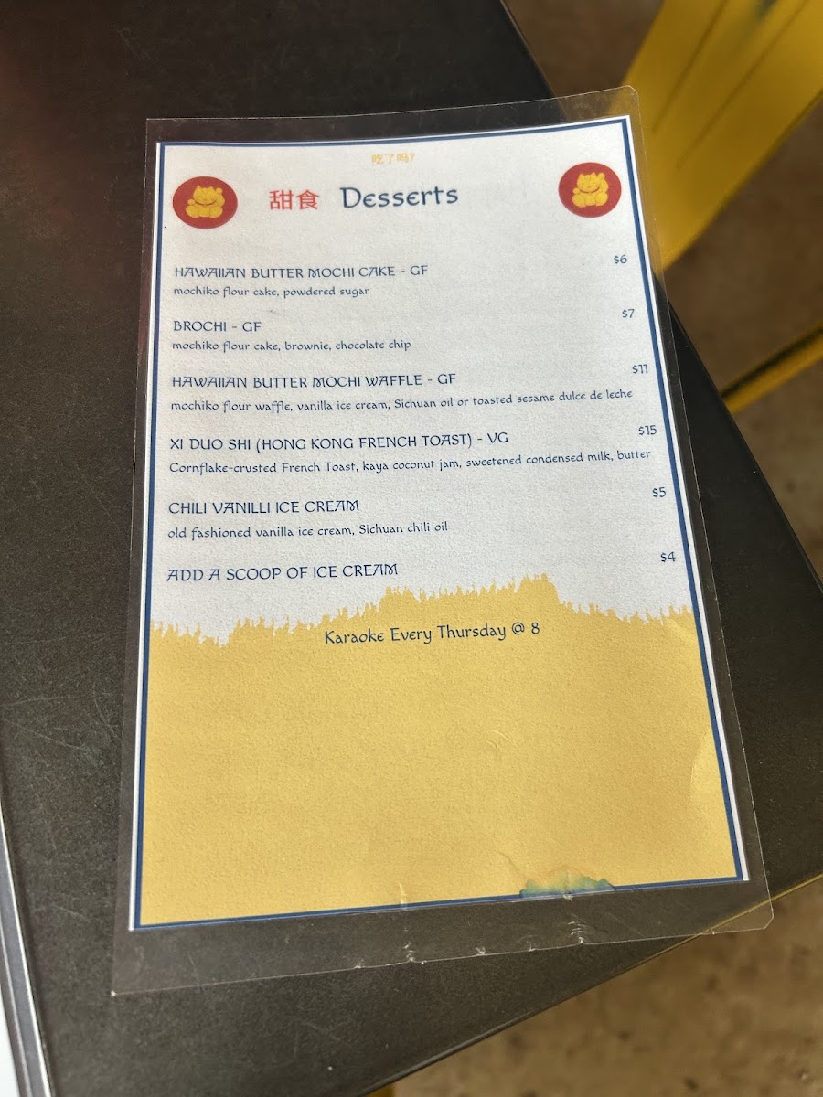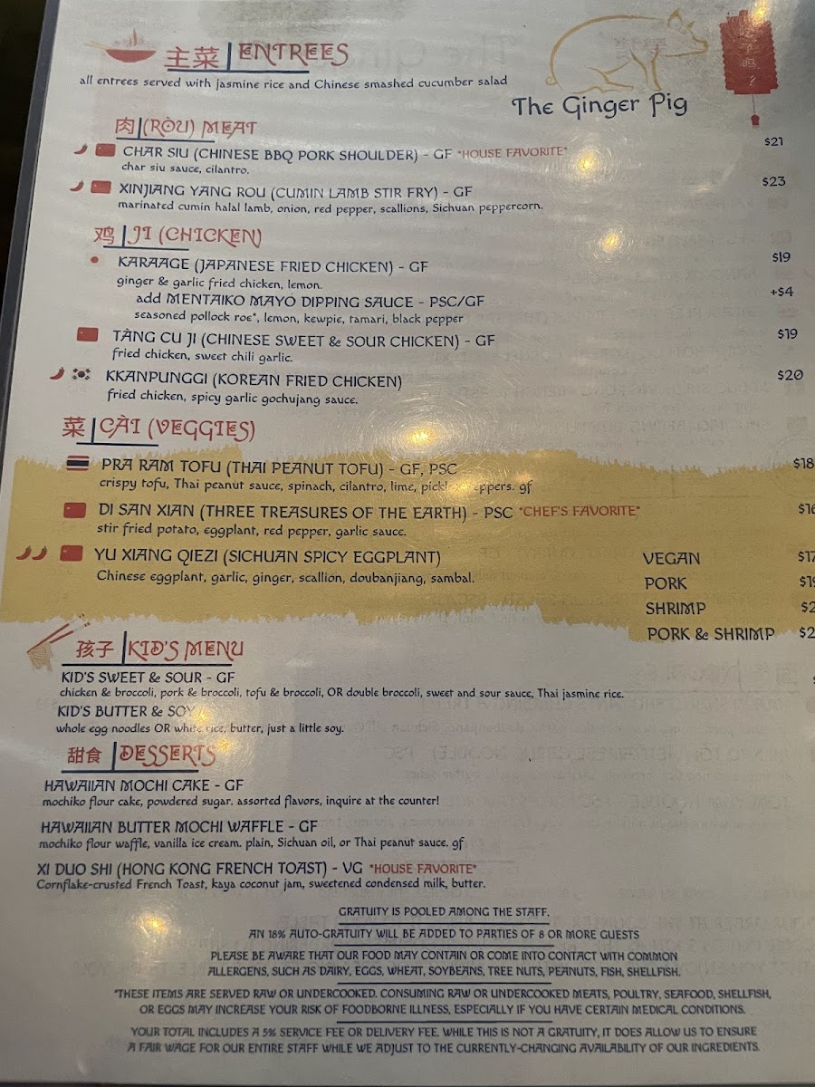 ginger & garlic fried chicken, lemon. (GF) Add Mentaiko* Mayo (seasoned pollock roe*, lemon, kewpie, tamari, black pepper) for $3. *-Consuming raw or undercooked meats, poultry, seafood, shellfish, or eggs may increase your risk of foodborne illness, especially if you have certain medical conditions. Served with Thai Jasmine Rice and Chinese Smashed Cucumber Salad.